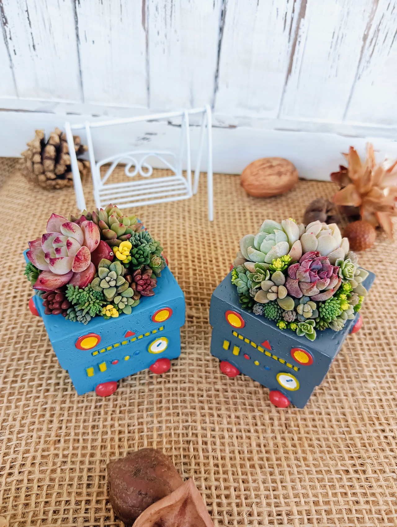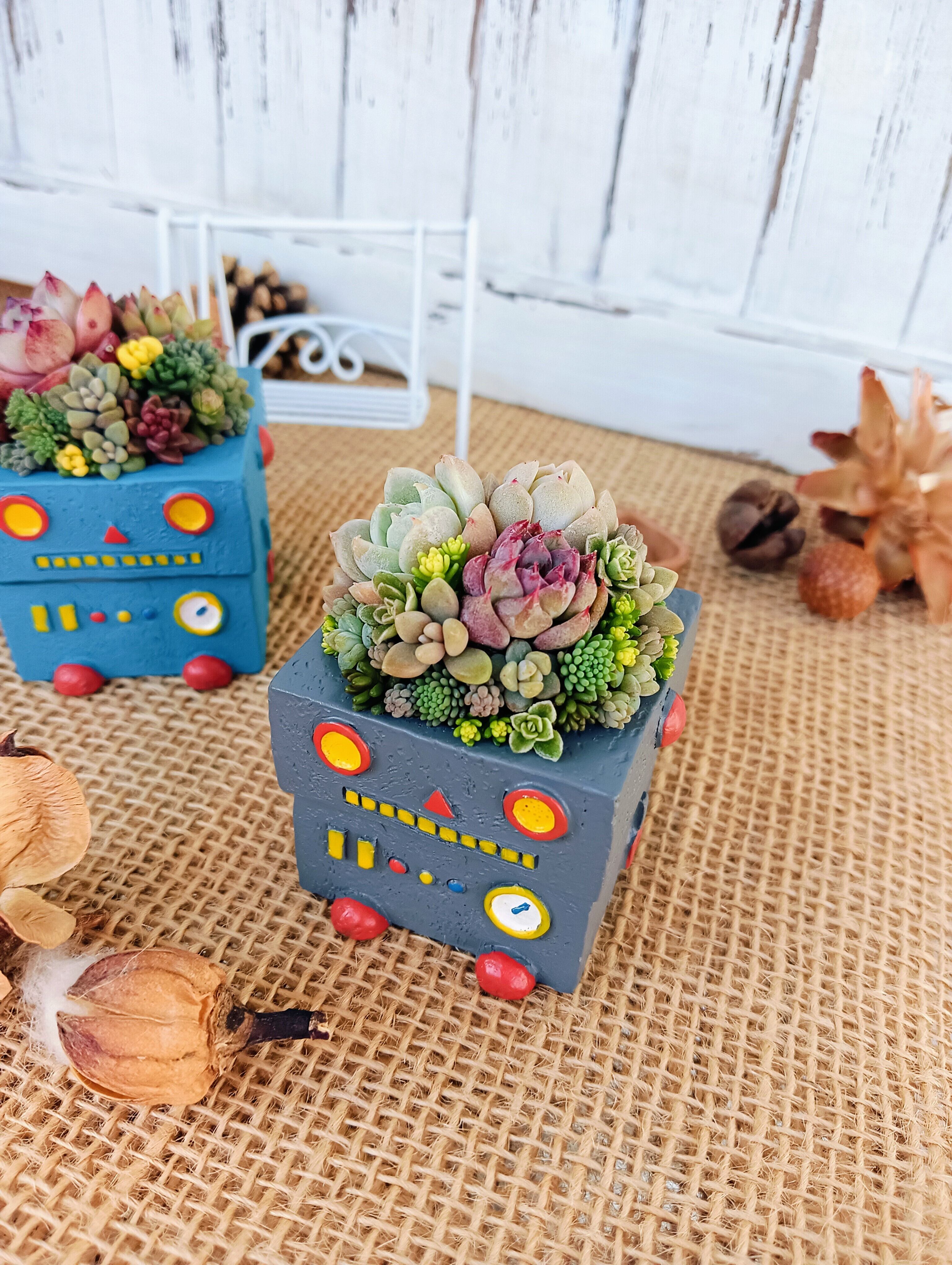 手の平にすっぽり入る小さなロボット鉢に、みっちり寄せをしました。