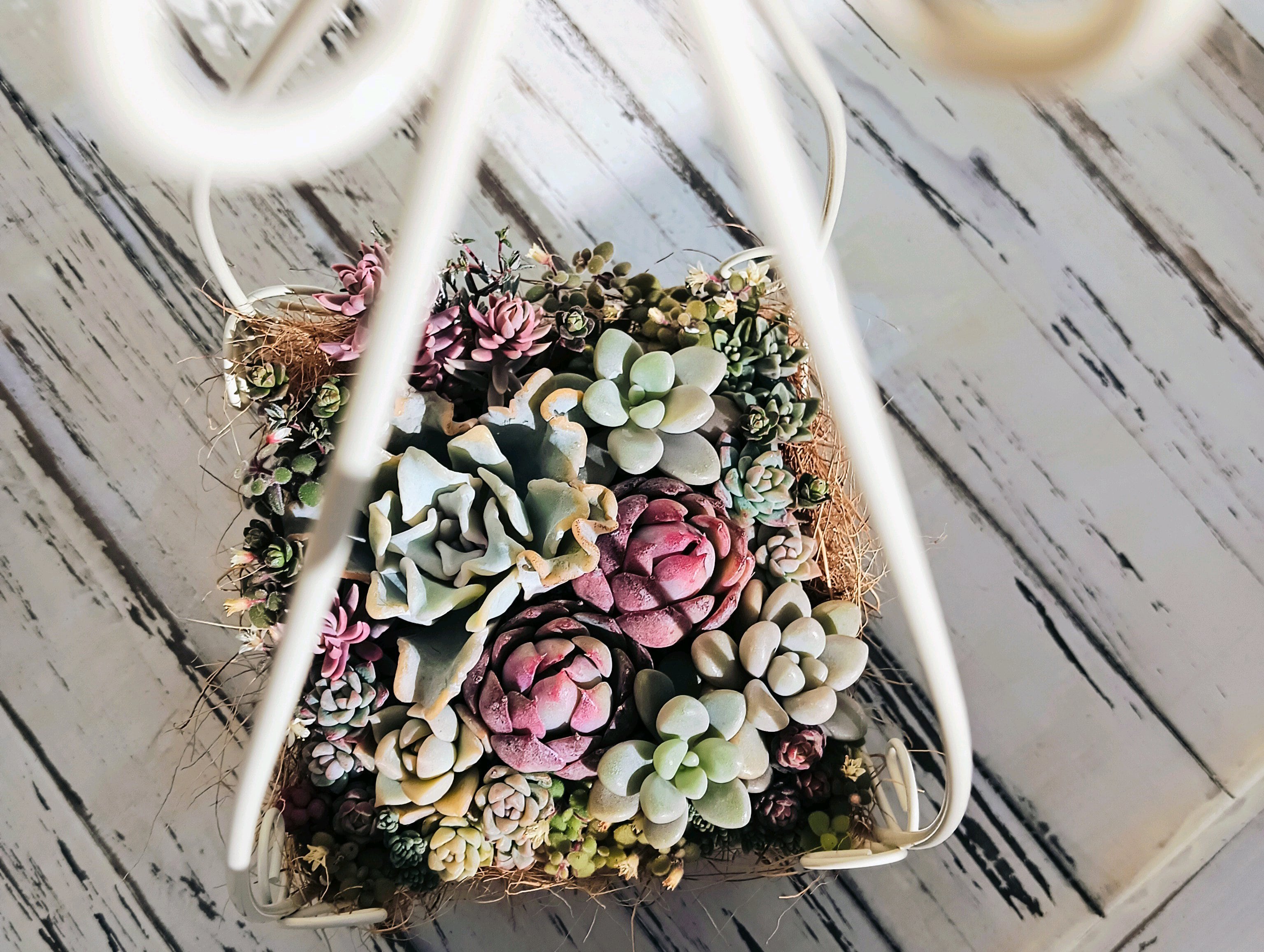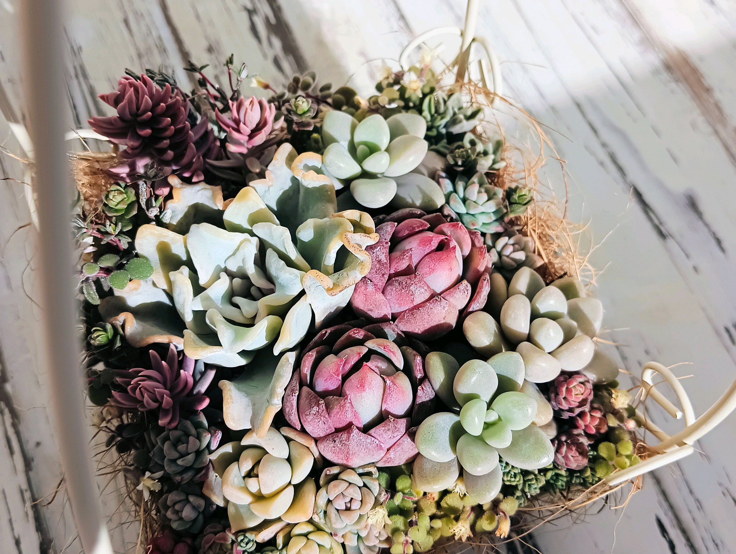 クリスペイトビューティが可愛いカラーレス寄せ植えです。